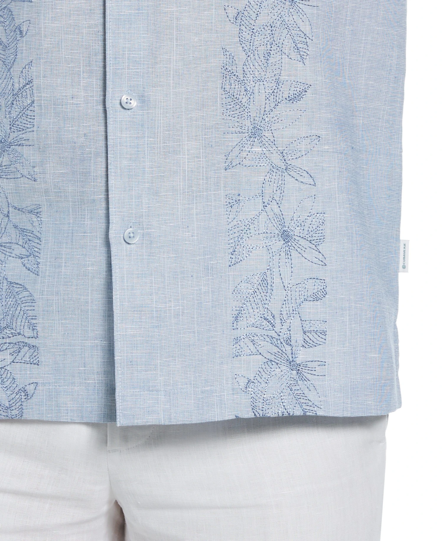 This Cubavera men’s short sleeve button-down shirt has a hot look and a cool feel. Crafted from a lightweight linen-cotton blend fabric, this breathable shirt is a versatile option when the weather heats up. Eye-catching floral embroidery panels, notch cuffs and a straight hem add distinctive detail that is sure to stand out. Pair it with Cubavera linen pants for a dance-floor ready look you can wear anywhere.