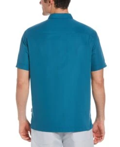 Experience an ideal blend of comfort and style with this men’s tropical shirt from Cubavera. Made with breathable linen blend fabric and featuring durable plain weave construction, this short sleeve button-up shirt is designed for long-lasting wear in warm climates. Geometric embroidery down the front panels adds a touch of sophistication, making it an ideal choice for both casual strolls around town and more formal family get-togethers. With its short sleeves and timeless button-down style, this shirt offers a relaxed yet refined look.