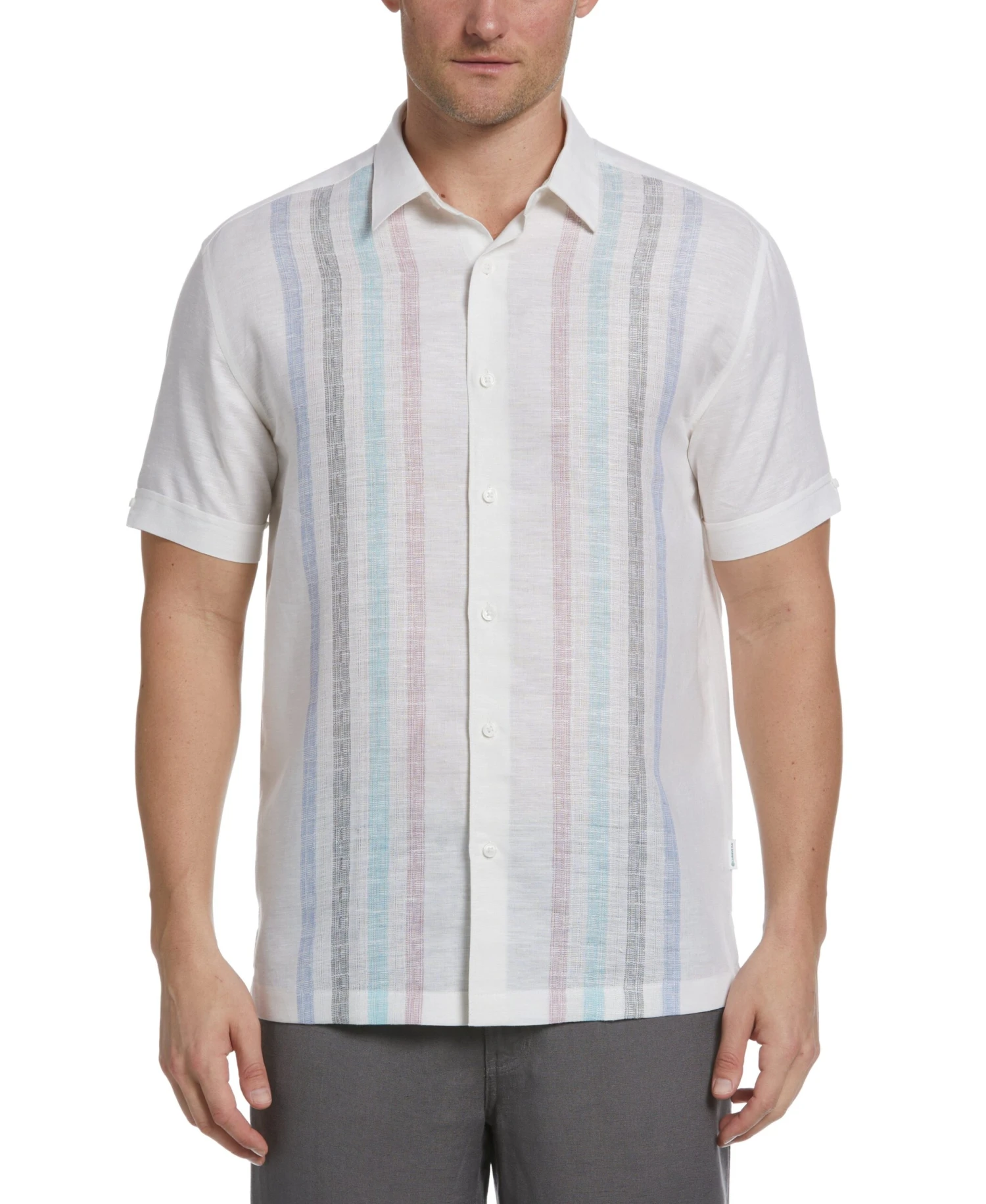 Contrasting checkered stripes on the front panels add a boost of modern style to this sharp men’s short sleeve button-up from Cubavera. Designed to be worn anytime, anywhere, this versatile men’s short sleeve shirt is made from a breathable linen blend to help keep you comfortable in changing weather conditions. Twill fabrication gives the material a lightweight feel, and it has a hint of stretch to help you move smoothly through your day.