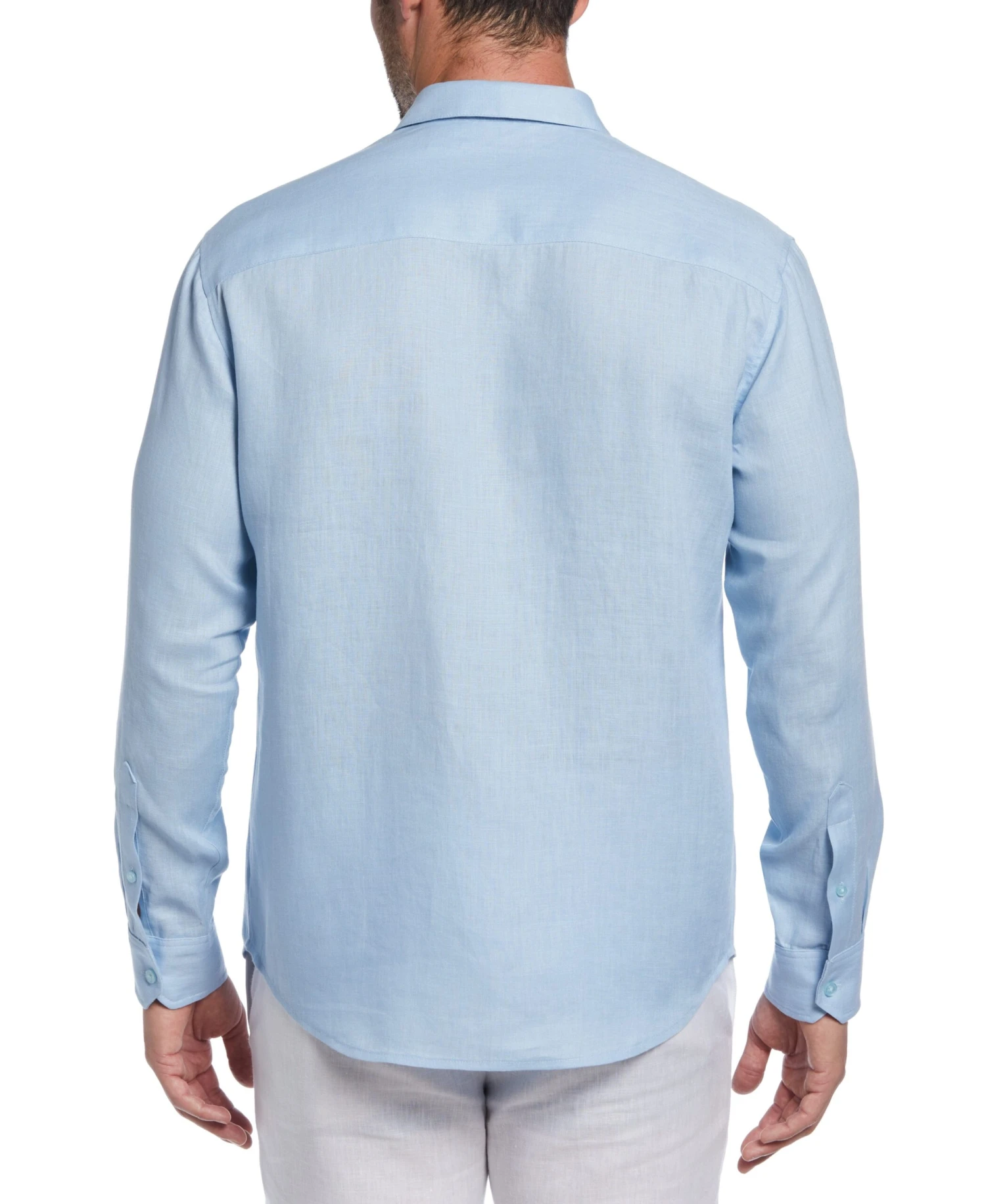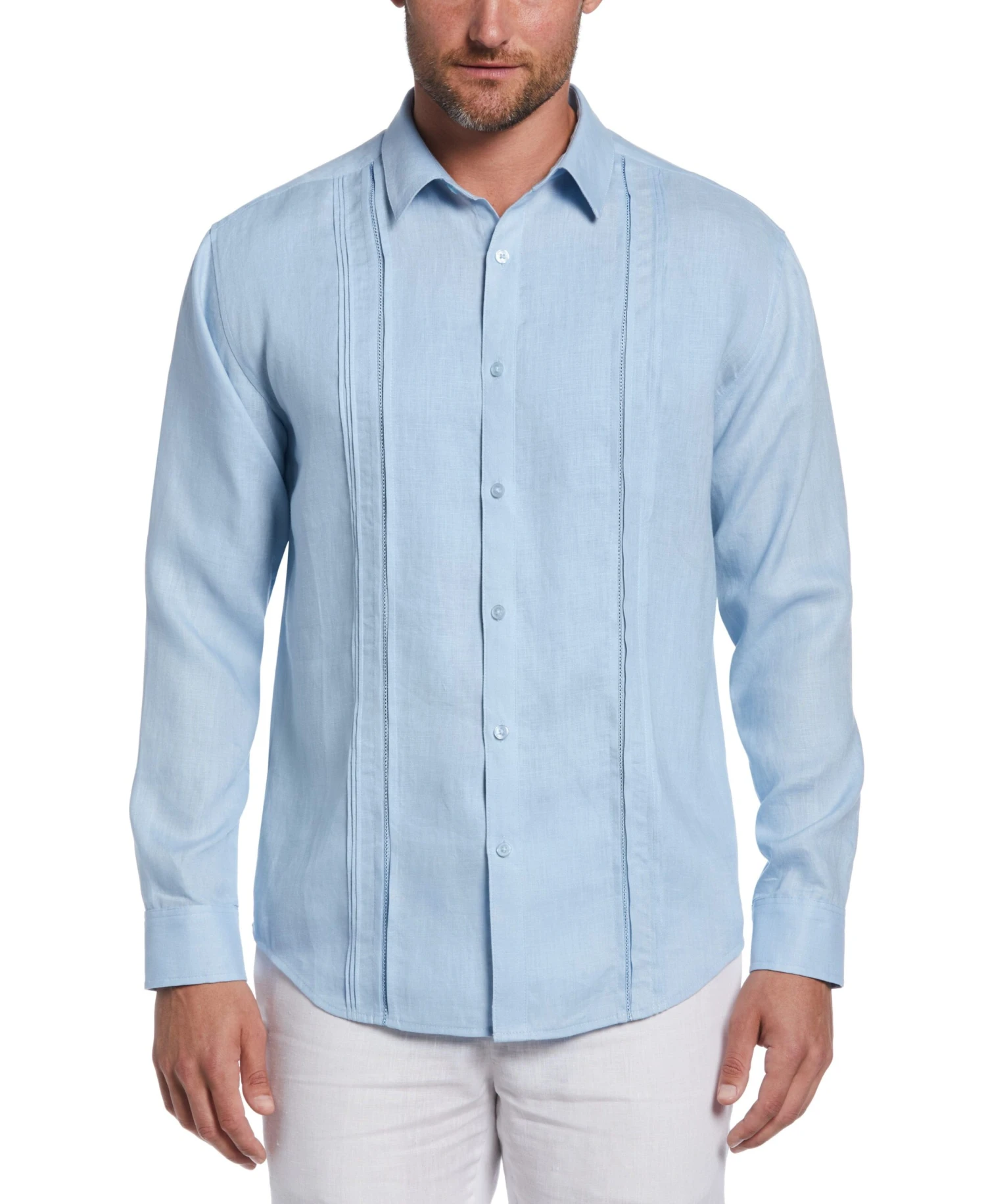 Add timeless guayabera style to your smart casual wardrobe with this men’s long sleeve shirt from the Cubavera Collection. Crafted from 100% linen with plain weave fabrication, this men’s button-down shirt is lightweight but durable. The embroidered pintuck detailing adds authentic style while the point collar provides a polished finishing touch.