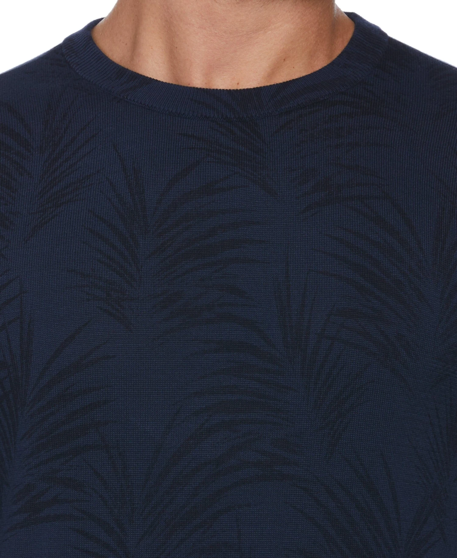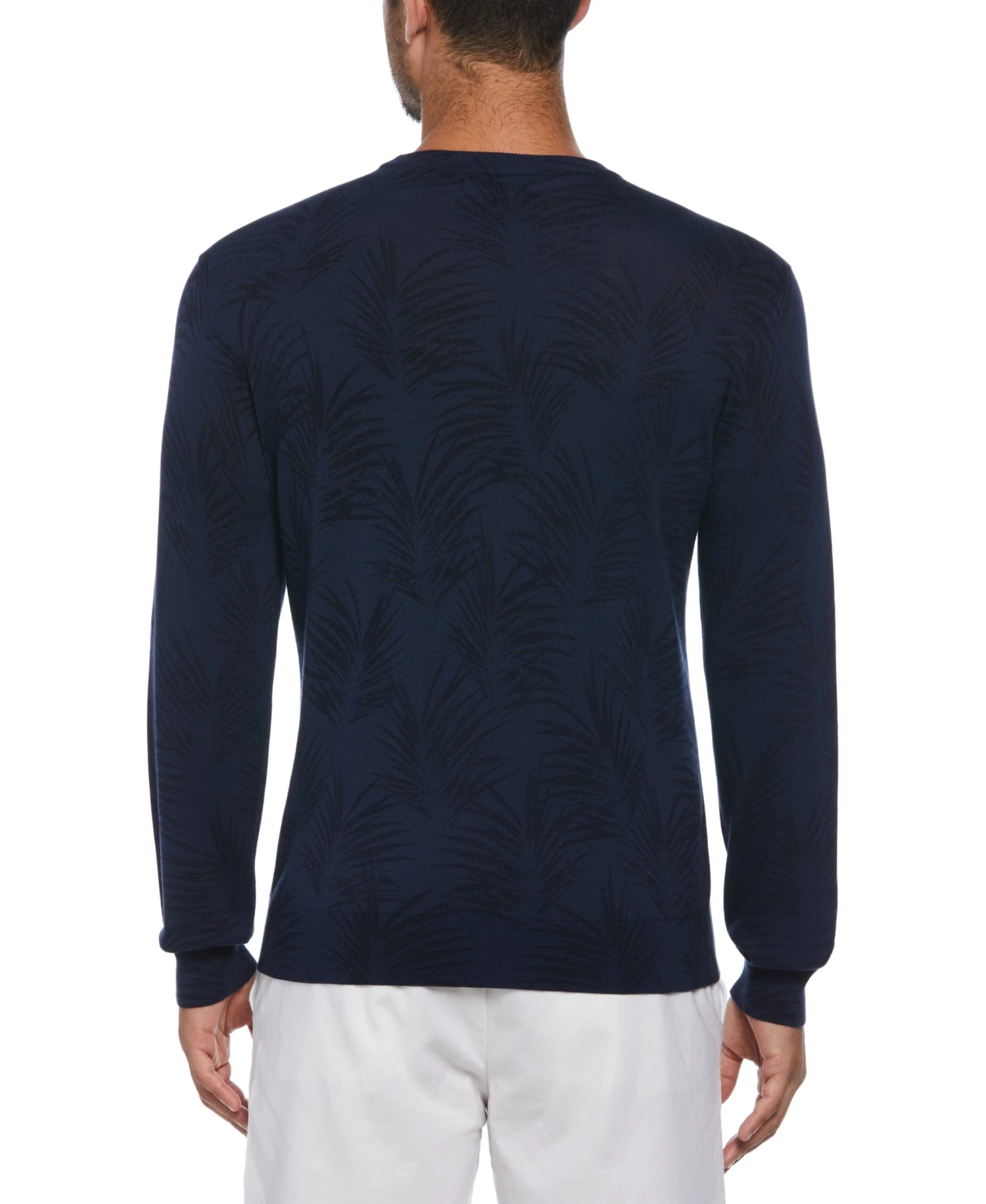 Crafted with a luxurious cotton-modal blend fabric, this Cubavera men’s crew neck sweater offers impressive softness. Jacquard fabrication creates a slightly raised, textured pattern that adds depth and dimension to the subtle palm print. Classic ribbing along the neckline, cuffs and hem completes the design. A great way to elevate your casual wardrobe, this sweater for men is versatile and stylish. Pair it with jeans for everyday errands or with sweats for a relaxing evening hanging out at home.