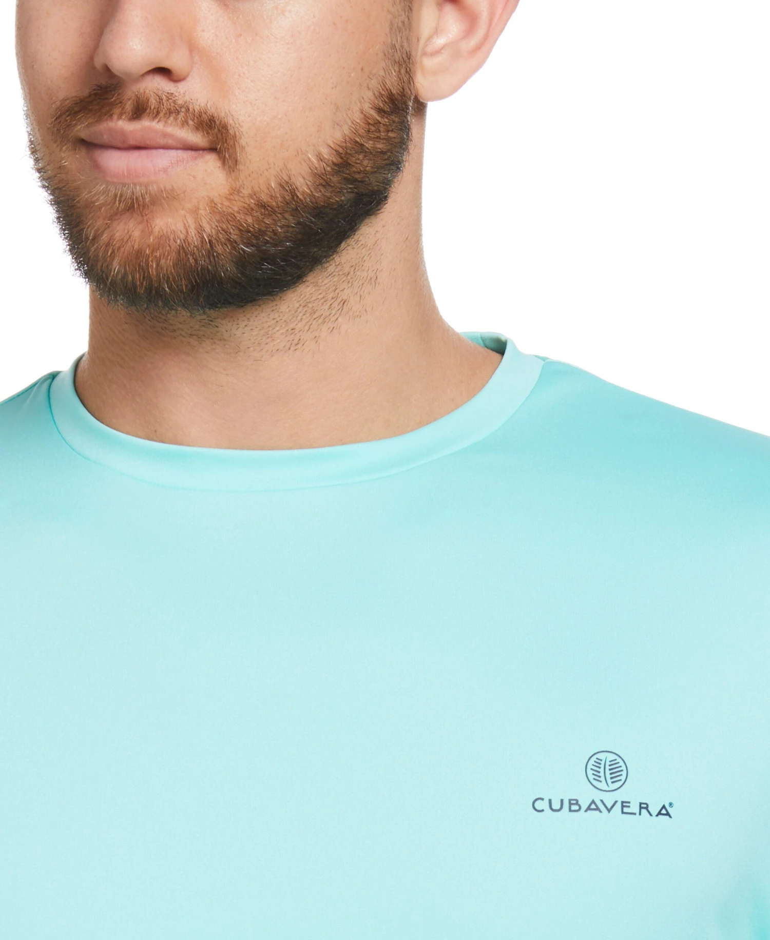 The back of this Cubavera men’s long sleeve shirt pops with a fun and fashionable paradise print. Double-knit fabric with added stretch provides a fit that moves with you and moisture-wicking properties keep you feeling cool and comfortable. This crew neck shirt offers innovative sun protection from damaging UV rays so you can soak up the sun safely. Pair it with your favorite Cubavera pants or shorts for a cool, casual look that has you covered.