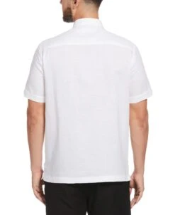 Linen Blend Contrast Embroidery Guayabera Shirt