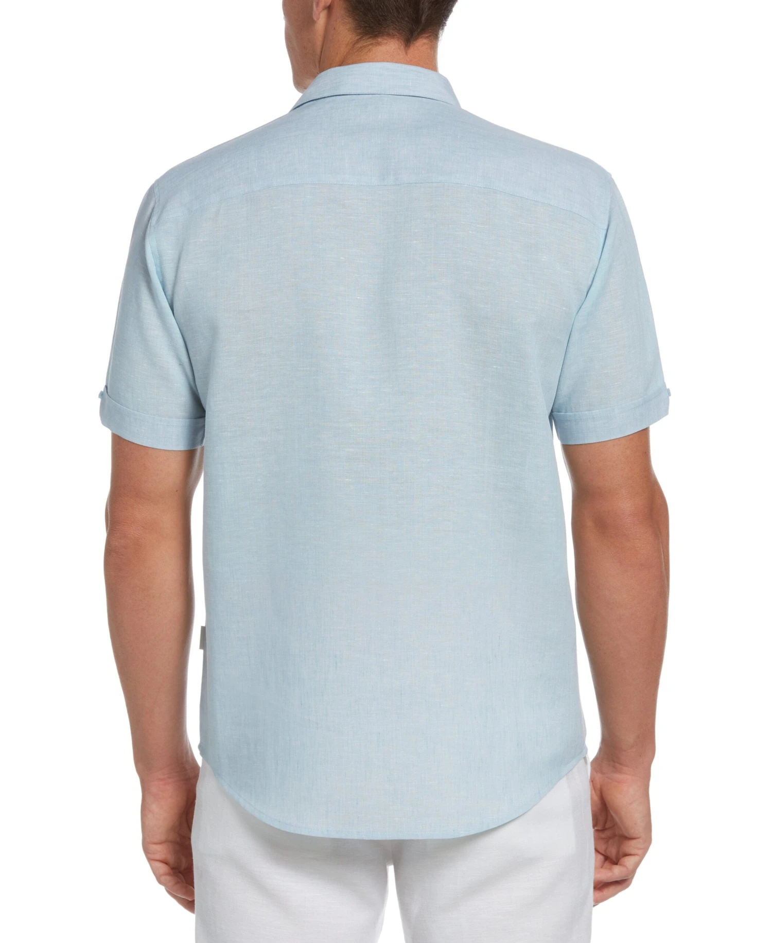 Keep it sleek, wherever you roam, with this Cubavera TravelSelect™ men’s short sleeve one pocket button-down shirt. Whether you’re traveling for work, pleasure, or simply enjoying your on-the-go lifestyle, this wrinkle-resistant linen-blend shirt has you covered. Pair it with our flat-front pants for a polished, put-together look.